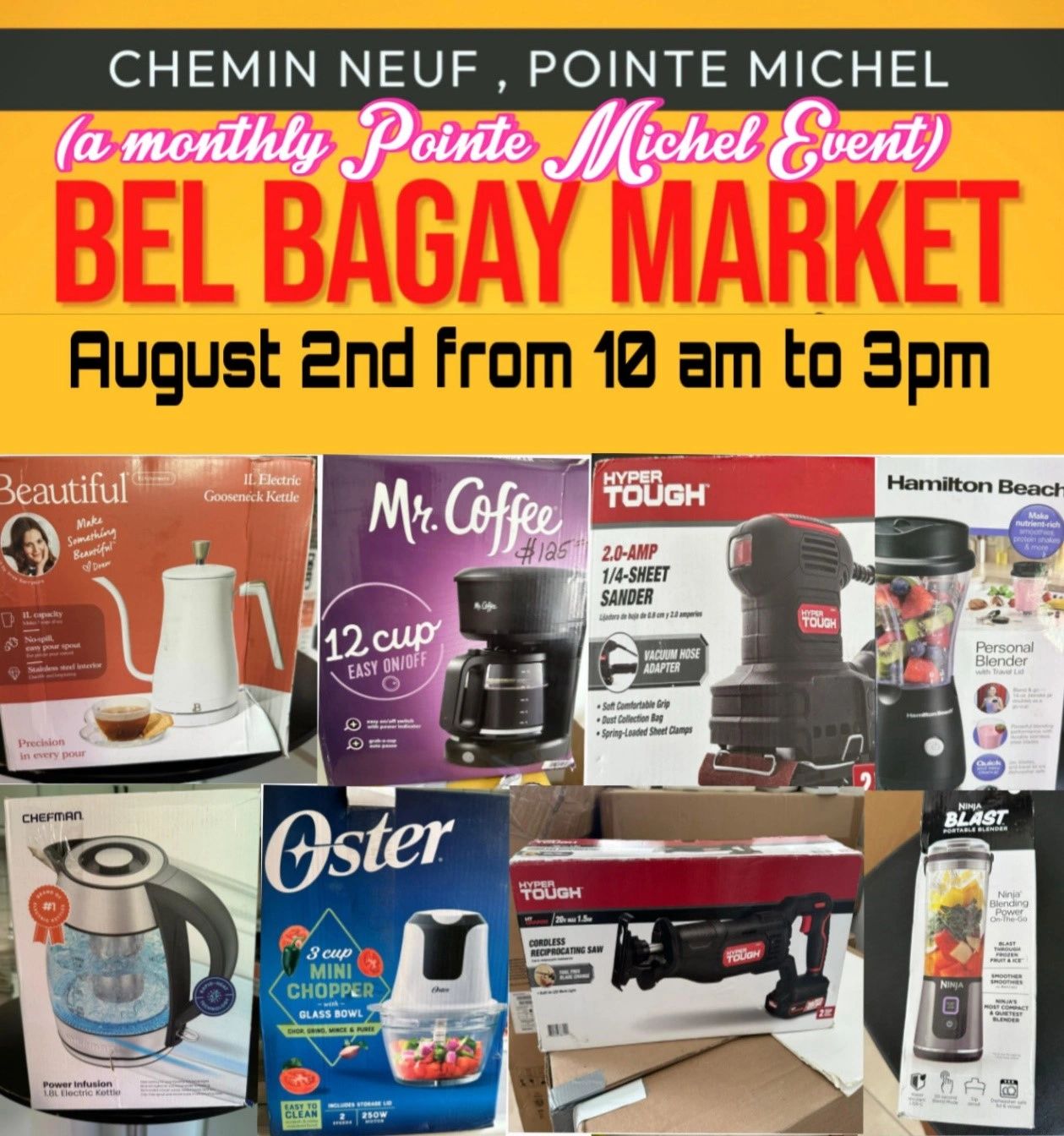 Step into the heart of Pointe Michel for Bel Bagay Market — a vibrant, open-air market showcasing great quality products - from tools, clothes, shoes, electronics, kitchen items, make up, and more — this is your space, your people, your vibes.